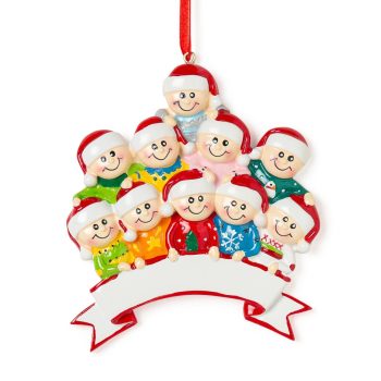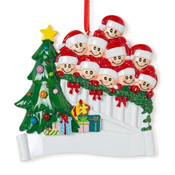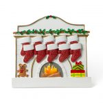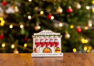 Le 10 calze appese sul camino acceso, pronte per essere riempite di regali e dolcetti, creano un’atmosfera calda e divertente per la tavola di Natale. Ogni calza è personalizzabile con un nome e nella decorazione è possibile aggiungere una data o un augurio sul banner bianco. Le nostre bravissime decoratrici seguiranno le tue indicazioni per personalizzarla a mano secondo i tuoi desideri, senza costi aggiuntivi. Ogni decorazione ti sarà consegnata nella bellissima Gift Box.