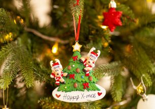 Le 2 divertenti renne sull’albero di Natale sono tra le decorazioni più natalizie del sito. Ogni oggetto potrà essere personalizzato, secondo i tuoi desideri, dalle nostre decoratrici. Si possono inserire i nomi dei membri della famiglia su ogni animaletto e scrivere un augurio, una data o una breve frase sul banner bianco. Tutte le scritte personalizzate sono fatte a mano, senza costi aggiuntivi. Ogni decorazione ti arriverà nella splendida Gift Box.