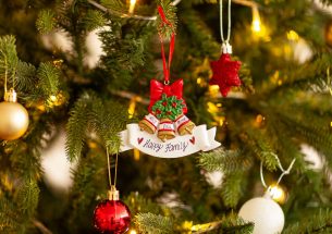 Il suono delle 3 campanelle di Natale appese all’albero farà pensare al tintinnio delle renne che portano la slitta con Babbo Natale. Ogni campanella è personalizzabile con un nome e nella decorazione è possibile aggiungere una data o un augurio sul banner bianco. Le nostre bravissime decoratrici seguiranno le tue indicazioni per personalizzarla a mano secondo i tuoi desideri, senza costi aggiuntivi. Ogni decorazione ti sarà consegnata nella bellissima Gift Box.