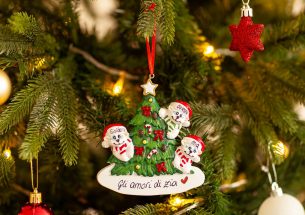 I 3 divertenti orsi polari sull’albero di Natale sono le decorazioni più natalizie e particolari del web. Ogni oggetto potrà essere personalizzato, secondo i tuoi desideri, dalle nostre decoratrici. Si possono inserire i nomi dei membri della famiglia su ogni animaletto e scrivere un augurio, una data o una breve frase sul banner bianco. Tutte le scritte personalizzate sono fatte a mano, senza costi aggiuntivi. Ogni decorazione ti arriverà nella splendida Gift Box.