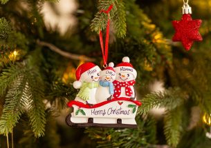 3 pupazzi di neve sulla slitta sono pronti per partire insieme per un giro divertente e spensierato in montagna. Puoi regalare o appendere al tuo albero di Natale la decorazione, che ti arriverà nella splendida Gift Box. La vera particolarità sta nella personalizzazione, infatti, puoi inserire i nomi sui cappellini dei 3 pupazzi di neve e scrivere una breve frase, un augurio o una data sulla slitta. Le nostre bravissime decoratrici scriveranno a mano ogni tuo desiderio, senza nessun costo aggiuntivo.