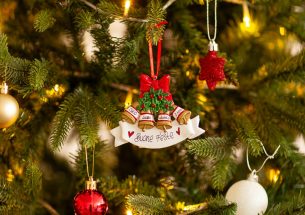 Il suono delle 4 campanelle di Natale appese all’albero farà pensare al tintinnio delle renne che portano la slitta con Babbo Natale. Ogni campanella è personalizzabile con un nome e nella decorazione è possibile aggiungere una data o un augurio sul banner bianco. Le nostre bravissime decoratrici seguiranno le tue indicazioni per personalizzarla a mano secondo i tuoi desideri, senza costi aggiuntivi. Ogni decorazione ti sarà consegnata nella bellissima Gift Box.