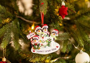 Fai scaldare i 4 pinguini sull’igloo portandoli a casa tua per decorare l’albero di Natale! Ogni oggetto potrà essere personalizzato, secondo i tuoi desideri, dalle nostre decoratrici. Si possono inserire i nomi dei membri della famiglia su ogni animaletto e scrivere un augurio, una data o una breve frase sul banner bianco. Tutte le scritte personalizzate sono fatte a mano, senza costi aggiuntivi. Ogni decorazione ti arriverà nella splendida Gift Box.