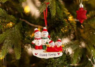 4 pupazzi di neve si divertono con lo slittino, un simbolo della famiglia in chiave divertente e natalizia. Puoi regalare o appendere al tuo albero di Natale la decorazione, che ti arriverà nella splendida Gift Box. La vera particolarità sta nella personalizzazione, infatti, puoi inserire i nomi sui cappellini dei 4 pupazzi di neve e scrivere una breve frase, un augurio o una data sul banner bianco. Le nostre bravissime decoratrici scriveranno a mano ogni tuo desiderio, senza nessun costo aggiuntivo.