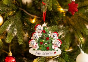 I 5 divertenti orsi polari sull’albero di Natale sono le decorazioni più natalizie e particolari del web. Ogni oggetto potrà essere personalizzato, secondo i tuoi desideri, dalle nostre decoratrici. Si possono inserire i nomi dei membri della famiglia su ogni animaletto e scrivere un augurio, una data o una breve frase sul banner bianco. Tutte le scritte personalizzate sono fatte a mano, senza costi aggiuntivi. Ogni decorazione ti arriverà nella splendida Gift Box.
