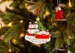 5 pupazzi di neve con l’albero sono i simboli del Natale divertente e dolce. Puoi regalare o appendere al tuo albero di Natale la decorazione, che ti arriverà nella splendida Gift Box. La vera particolarità sta nella personalizzazione, infatti, puoi inserire i nomi sui cappellini dei 5 pupazzi di neve e scrivere una breve frase, un augurio o una data sul banner bianco. Le nostre bravissime decoratrici scriveranno a mano ogni tuo desiderio, senza nessun costo aggiuntivo.
