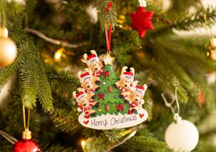 Le 5 divertenti renne sull’albero di Natale sono tra le decorazioni più natalizie del sito. Ogni oggetto potrà essere personalizzato, secondo i tuoi desideri, dalle nostre decoratrici. Si possono inserire i nomi dei membri della famiglia su ogni animaletto e scrivere un augurio, una data o una breve frase sul banner bianco. Tutte le scritte personalizzate sono fatte a mano, senza costi aggiuntivi. Ogni decorazione ti arriverà nella splendida Gift Box.