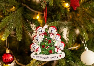I 6 divertenti orsi polari sull’albero di Natale sono le decorazioni più natalizie e particolari del web. Ogni oggetto potrà essere personalizzato, secondo i tuoi desideri, dalle nostre decoratrici. Si possono inserire i nomi dei membri della famiglia su ogni animaletto e scrivere un augurio, una data o una breve frase sul banner bianco. Tutte le scritte personalizzate sono fatte a mano, senza costi aggiuntivi. Ogni decorazione ti arriverà nella splendida Gift Box.