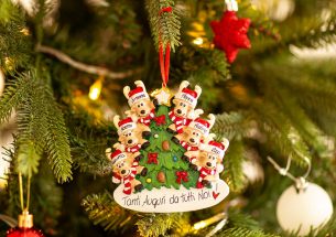 Le 6 divertenti renne sull’albero di Natale sono tra le decorazioni più natalizie del sito. Ogni oggetto potrà essere personalizzato, secondo i tuoi desideri, dalle nostre decoratrici. Si possono inserire i nomi dei membri della famiglia su ogni animaletto e scrivere un augurio, una data o una breve frase sul banner bianco. Tutte le scritte personalizzate sono fatte a mano, senza costi aggiuntivi. Ogni decorazione ti arriverà nella splendida Gift Box.