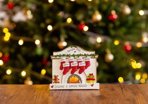 Le 7 calze appese sul camino acceso, pronte per essere riempite di regali e dolcetti, creano un’atmosfera calda e divertente per la tavola di Natale. Ogni calza è personalizzabile con un nome e nella decorazione è possibile aggiungere una data o un augurio sul banner bianco. Le nostre bravissime decoratrici seguiranno le tue indicazioni per personalizzarla a mano secondo i tuoi desideri, senza costi aggiuntivi. Ogni decorazione ti sarà consegnata nella bellissima Gift Box.