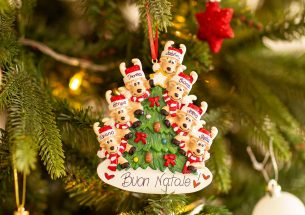 Le 7 divertenti renne sull’albero di Natale sono tra le decorazioni più natalizie del sito. Ogni oggetto potrà essere personalizzato, secondo i tuoi desideri, dalle nostre decoratrici. Si possono inserire i nomi dei membri della famiglia su ogni animaletto e scrivere un augurio, una data o una breve frase sul banner bianco. Tutte le scritte personalizzate sono fatte a mano, senza costi aggiuntivi. Ogni decorazione ti arriverà nella splendida Gift Box.