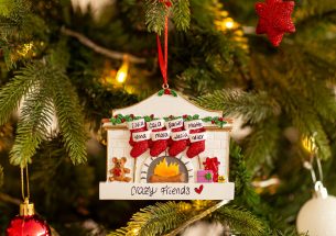 Le 8 calze appese sul camino acceso, pronte per essere riempite di regali e dolcetti, creano un’atmosfera calda e natalizia che si propaga per tutta la casa. Ogni calza è personalizzabile con un nome e nella decorazione è possibile aggiungere una data o un augurio sul banner bianco. Le nostre bravissime decoratrici seguiranno le tue indicazioni per personalizzarla a mano secondo i tuoi desideri, senza costi aggiuntivi. Ogni decorazione ti sarà consegnata nella bellissima Gift Box.