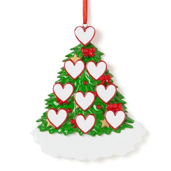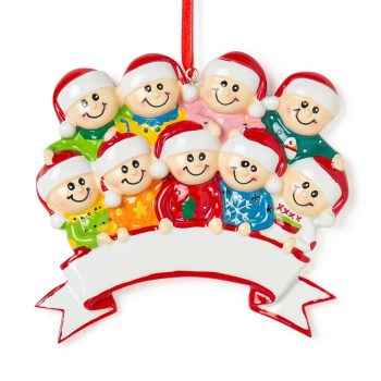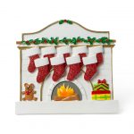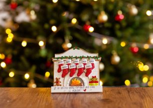 Le 9 calze appese sul camino acceso, pronte per essere riempite di regali e dolcetti, creano un’atmosfera calda e divertente per la tavola di Natale. Ogni calza è personalizzabile con un nome e nella decorazione è possibile aggiungere una data o un augurio sul banner bianco. Le nostre bravissime decoratrici seguiranno le tue indicazioni per personalizzarla a mano secondo i tuoi desideri, senza costi aggiuntivi. Ogni decorazione ti sarà consegnata nella bellissima Gift Box.