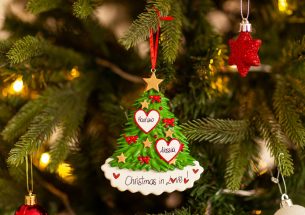 Amore fa rima con Natale. L’albero con i 2 cuori non può mancare in casa per avere la calda e dolce atmosfera natalizia! La decorazione è pronta per essere personalizzata inserendo i nomi sui 2 cuori e scrivendo una breve frase, un augurio o una data sul banner bianco. Le nostre bravissime decoratrici scriveranno a mano ogni tuo desiderio, senza nessun costo aggiuntivo. Ogni decorazione sarà consegnata nella splendida Gift Box.