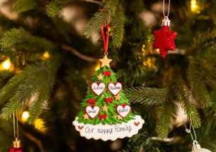 Amore fa rima con Natale. L’albero con i 4 cuori non può mancare in casa per avere la calda e dolce atmosfera natalizia! La decorazione è pronta per essere personalizzata inserendo i nomi sui 4 cuori e scrivendo una breve frase, un augurio o una data sul banner bianco. Le nostre bravissime decoratrici scriveranno a mano ogni tuo desiderio, senza nessun costo aggiuntivo. Ogni decorazione sarà consegnata nella splendida Gift Box.