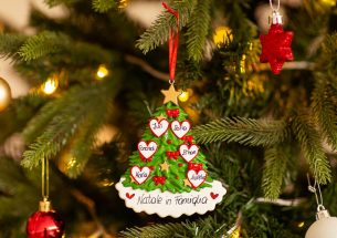 Amore fa rima con Natale. L’albero con i 6 cuori non può mancare in casa per avere la calda e dolce atmosfera natalizia! La decorazione è pronta per essere personalizzata inserendo i nomi sui 6 cuori e scrivendo una breve frase, un augurio o una data sul banner bianco. Le nostre bravissime decoratrici scriveranno a mano ogni tuo desiderio, senza nessun costo aggiuntivo. Ogni decorazione sarà consegnata nella splendida Gift Box.
