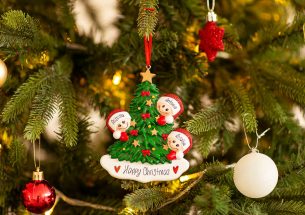 Un bellissimo ed elegante albero di Natale con stella e tanti volti che spuntano dai rami pronti ad essere chiamati per nome. La decorazione è pronta per essere personalizzata inserendo i nomi sui cappellini dei 3 personaggi e scrivendo una breve frase, un augurio o una data sul banner bianco. Le nostre bravissime decoratrici scriveranno a mano ogni tuo desiderio, senza nessun costo aggiuntivo. Ogni decorazione sarà consegnata nella splendida Gift Box.