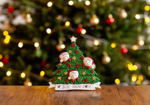 Tre simpatiche faccette spuntano dai rami dell’albero completando la divertente decorazione per la tavola di Natale. Tutti gli addobbi natalizi per la tavola da pranzo sono pronti per essere personalizzati inserendo i nomi sul cappellino di ogni personaggio e scrivendo una frase, un augurio o una data sul banner bianco. Le nostre bravissime decoratrici scriveranno a mano ogni tuo desiderio, senza nessun costo aggiuntivo. Ogni decorazione sarà consegnata nella splendida Gift Box.