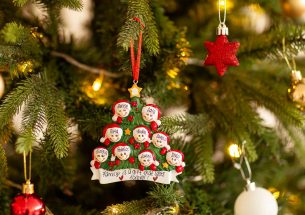 Nove simpatiche faccette spuntano dai rami dell’albero di Natale completando il divertente addobbo natalizio. La decorazione da appendere all’albero è pronta per essere personalizzata inserendo i nomi sul cappellino di ogni personaggio e scrivendo una frase, un augurio o una data sul banner bianco. Le nostre bravissime decoratrici provvederanno a scrivere a mano ogni tuo desiderio, senza nessun costo aggiuntivo. Ogni decorazione sarà consegnata nella splendida Gift Box.