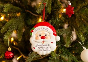 Il personaggio più amato e conosciuto in tutto il mondo: Babbo Natale. Un regalo ironico e dolce per zii, nonni e papà. La vera particolarità sta nella personalizzazione, infatti, puoi inserire il nome sul cappellino e scrivere una breve frase, un augurio o una data sul banner bianco. Le nostre bravissime decoratrici scriveranno a mano ogni tuo desiderio, senza nessun costo aggiuntivo. La decorazione, da appendere all’albero, arriverà nella splendida Gift Box.
