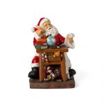 Babbo Natale comincia molti mesi prima a preparare i regali per tutti i bambini, iniziando a leggere le letterine che arrivano nella sua casa al Circolo Polare Artico da tutto il mondo. Poi seduto alla sua scrivania impacchetta tutti i giochi e gli oggetti richiesti e si prepara alla partenza insieme alle sue renne. Una bella scultura da regalare agli amici o posizionare sulla scrivania, sulla mensola o sul mobile più bello di casa tua!