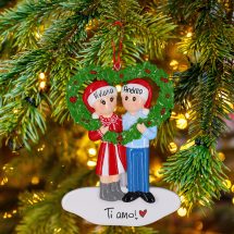 Un bacio sulla ghirlanda portafortuna a forma di cuore per coronare l’amore. Una decorazione originale per l’albero di Natale, che le nostre decoratrici potranno personalizzare secondo le tue indicazioni. È possibile inserire i nomi degli innamorati sui cappellini e scrivere una frase, una data o un augurio sul banner bianco. Tutte le personalizzazioni sono fatte a mano, senza nessun costo aggiuntivo. Ogni prodotto acquistato sarà consegnato nella splendida Gift Box.