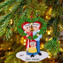 Un bacio sulla ghirlanda portafortuna a forma di cuore per coronare l’amore. Una decorazione originale per l’albero di Natale, che le nostre decoratrici potranno personalizzare secondo le tue indicazioni. È possibile inserire i nomi sui 3 cappellini e scrivere una frase, una data o un augurio sul banner bianco. Tutte le personalizzazioni sono fatte a mano, senza nessun costo aggiuntivo. Ogni prodotto acquistato sarà consegnato nella splendida Gift Box.