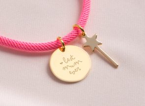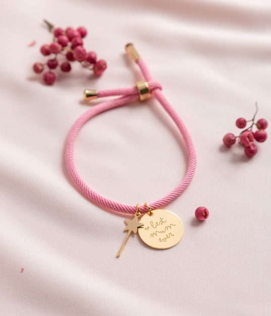 Cordino regolabile - piastrina e charm bacchetta magica in ottone placcato .