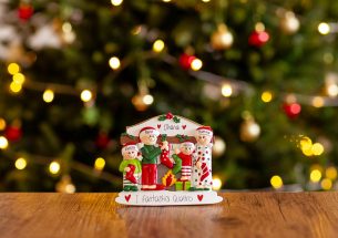 La simpatica decorazione per la tavola di Natale con lo scambio delle calze sul camino omaggia una tradizione divertente e dolce: a ognuno la sua calza, piena di caramelle e doni. Tutti gli addobbi natalizi per la tavola da pranzo sono pronti per essere personalizzati inserendo i nomi sui cappellini dei 4 personaggi e scrivendo una frase, un augurio o una data sul banner bianco. Le nostre bravissime decoratrici scriveranno a mano ogni tuo desiderio, senza nessun costo aggiuntivo. Ogni decorazione sarà consegnata nella splendida Gift Box.