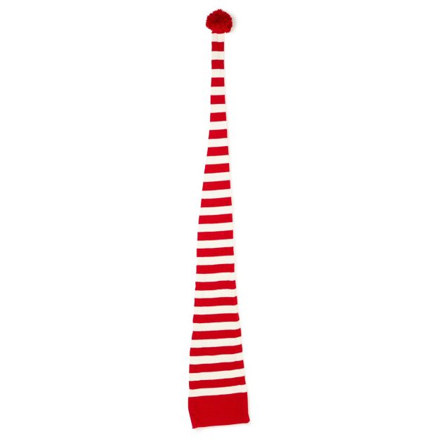 Indossando il lunghissimo cappello da elfo la magia del Natale sarà ancora più grande. La sera della vigilia stupite amici e parenti presentandovi alla cena con il cappello. La lunghezza permette di avvolgerlo intorno al collo per creare una sciarpa. Prodotto nelle tonalità natalizie del rosso, bianco e verde quando indosserete il cappello sarete al centro dell’attenzione e potrete dire di essere un vero elfo di Babbo Natale. Il cappello/sciarpa righe rosse misura 120 cm