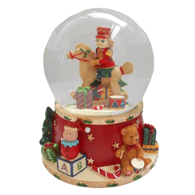 Un carillon che ha come protagonista uno dei personaggi più amati del Natale: lo Schiaccianoci. Lo Schiaccianoci a cavallo è protetto da una campana di vetro che rende l'atmosfera ancora più natalizia. Il carillon girando su se stesso allieterà tutta la famiglia suonando le melodie natalizie. Carillon con musiche di Natale!