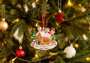 La casa pan di zenzero è pronta ad accogliere tutti con dolcetti e caramelle per rendere il Natale ancora più divertente. La decorazione da appendere all’albero è pronta per essere personalizzata inserendo i nomi sui cappellini dei 3 personaggi e scrivendo una frase, un augurio o una data sul banner bianco. Le nostre bravissime decoratrici provvederanno a scrivere a mano ogni tuo desiderio, senza nessun costo aggiuntivo. Ogni decorazione sarà consegnata nella splendida Gift Box.