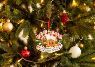 La casa pan di zenzero è pronta ad accogliere tutti con dolcetti e caramelle per rendere il Natale ancora più divertente. La decorazione da appendere all’albero è pronta per essere personalizzata inserendo i nomi sui cappellini dei 6 personaggi e scrivendo una frase, un augurio o una data sul banner bianco. Le nostre bravissime decoratrici provvederanno a scrivere a mano ogni tuo desiderio, senza nessun costo aggiuntivo. Ogni decorazione sarà consegnata nella splendida Gift Box.