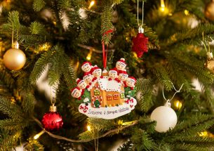 La casa pan di zenzero è pronta ad accogliere tutti con dolcetti e caramelle per rendere il Natale ancora più divertente. La decorazione da appendere all’albero è pronta per essere personalizzata inserendo i nomi sui cappellini dei 9 personaggi e scrivendo una frase, un augurio o una data sul banner bianco. Le nostre bravissime decoratrici provvederanno a scrivere a mano ogni tuo desiderio, senza nessun costo aggiuntivo. Ogni decorazione sarà consegnata nella splendida Gift Box.