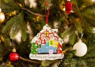 La casetta di mattoni è stata addobbata con lucine e decorazioni natalizie e accoglierà amici e parenti per le feste. La decorazione è pronta per essere personalizzata inserendo i nomi sui cappellini dei 5 personaggi e scrivendo una breve frase, un augurio o una data sul banner bianco. Le nostre bravissime decoratrici scriveranno a mano ogni tuo desiderio, senza nessun costo aggiuntivo. Ogni decorazione sarà consegnata nella splendida Gift Box.