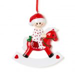 Il bimbo che gioca in sella al cavallo natalizio a dondolo è una decorazione dolcissima e originale per l’albero ed è pronta per essere personalizzata con un tuo messaggio! Le nostre bravissime decoratrici seguiranno le tue indicazioni per personalizzare la decorazione. È possibile inserire un nome sul cappellino e scrivere una frase, una dedica, una data o un augurio sul piedistallo del cavallo. Tutte le personalizzazioni sono fatte a mano, senza nessun costo aggiuntivo. Ogni decorazione acquistata sarà consegnata nella Gift Box natalizia.