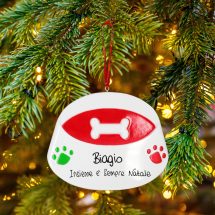 Quest’anno anche i nostri cagnolini avranno il loro meritato posto sull’albero di Natale. Questa ciotola potrà essere appesa all'labero con altre decorazioni. La particolarità della decorazione sta nella personalizzazione, infatti puoi inserire il nome sulla ciotola. Le nostre bravissime decoratrici lo scriveranno a mano, senza nessun costo aggiuntivo.
