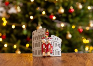Natale insieme a uno dei monumenti più famosi di Roma: il Colosseo. Una parte di storia in una decorazione per la tavola di Natale, un omaggio alla città eterna. La vera particolarità sta nella personalizzazione, infatti, puoi inserire i nomi sugli elmi romani dei 2 centurioni e scrivere una breve frase, un augurio o una data sul banner bianco. Le nostre bravissime decoratrici scriveranno a mano ogni tuo desiderio, senza nessun costo aggiuntivo. Ogni prodotto acquistato sarà consegnato nella splendida Gift Box.