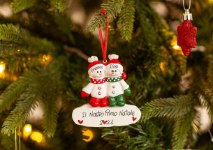 La coppia di pupazzi di neve simboleggia l’amore eterno da festeggiare a Natale. Puoi regalare o appendere al tuo albero di Natale la decorazione, che ti arriverà nella splendida Gift Box. La vera particolarità sta nella personalizzazione, infatti, puoi inserire i nomi sui cappellini dei 2 pupazzi di neve e scrivere una breve frase, un augurio o una data sul banner bianco. Le nostre bravissime decoratrici scriveranno a mano ogni tuo desiderio, senza nessun costo aggiuntivo.