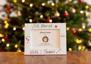 Una cornice bianca, colore elegante e simbolo di pace, interamente da personalizzare! Scegli la foto giusta e pensa a un augurio di Natale, una frase, una parola, un nome o una data importante da inserire nel bordo della cornice. Le nostre bravissime decoratrici scriveranno a mano ogni tuo desiderio, senza nessun costo aggiuntivo. Ogni decorazione sarà consegnata nella splendida Gift Box.
