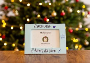 Una cornice celeste, da regalare per il lieto evento di una nascita, interamente da personalizzare! Scegli la foto giusta e pensa a un augurio, una frase, una parola, un nome o una data importante da inserire nel bordo della cornice. Le nostre bravissime decoratrici scriveranno a mano ogni tuo desiderio, senza nessun costo aggiuntivo. Ogni decorazione sarà consegnata nella splendida Gift Box.