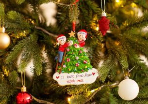 Decorando l’albero di Natale tutti insieme, la giornata diventerà piacevole e divertente. La decorazione è pronta per essere personalizzata inserendo i nomi sui cappellini dei 2 personaggi e scrivendo una breve frase, un augurio o una data sul banner bianco. Le nostre bravissime decoratrici scriveranno a mano ogni tuo desiderio, senza nessun costo aggiuntivo. Ogni decorazione sarà consegnata nella splendida Gift Box.