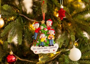 Decorando l’albero di Natale tutti insieme, la giornata diventerà piacevole e divertente. La decorazione è pronta per essere personalizzata inserendo i nomi sui cappellini dei 4 personaggi e scrivendo una breve frase, un augurio o una data sul banner bianco. Le nostre bravissime decoratrici scriveranno a mano ogni tuo desiderio, senza nessun costo aggiuntivo. Ogni decorazione sarà consegnata nella splendida Gift Box.