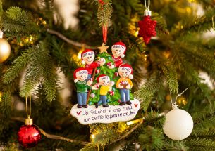 Decorando l’albero di Natale tutti insieme, la giornata diventerà piacevole e divertente. La decorazione è pronta per essere personalizzata inserendo i nomi sui cappellini dei 5 personaggi e scrivendo una breve frase, un augurio o una data sul banner bianco. Le nostre bravissime decoratrici scriveranno a mano ogni tuo desiderio, senza nessun costo aggiuntivo. Ogni decorazione sarà consegnata nella splendida Gift Box.