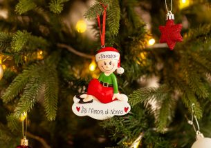 Una piccola e dolce elfetta, con il sorriso simpatico e furbetto, è il regalo di Natale giusto per una nipote, una figlia o l’amica del cuore. La vera particolarità sta nella personalizzazione, infatti, puoi inserire il nome sul cappellino e scrivere una breve frase, un augurio o una data sul banner bianco. Le nostre bravissime decoratrici scriveranno a mano ogni tuo desiderio, senza nessun costo aggiuntivo. La decorazione, da appendere all’albero, arriverà nella splendida Gift Box.