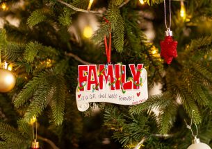 Una parola con un grande significato “Family”, che comprende tutte le persone più care della nostra vita. Regala alla tua famiglia questa decorazione da appendere all’albero di Natale, che arriverà nella splendida Gift Box. La vera particolarità sta nella personalizzazione, infatti, puoi inserire una frase, un cognome o un augurio nel banner bianco. Le nostre bravissime decoratrici scriveranno a mano ogni tuo desiderio, senza nessun costo aggiuntivo.