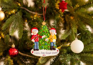 Pronti per una serata cool? Festa con i maglioni di Natale e che vinca il più originale! La decorazione è pronta per essere personalizzata inserendo i nomi sui cappellini dei 2 personaggi e scrivendo una breve frase, un augurio o una data sul banner bianco. Le nostre bravissime decoratrici scriveranno a mano ogni tuo desiderio, senza nessun costo aggiuntivo. Ogni decorazione sarà consegnata nella splendida Gift Box.