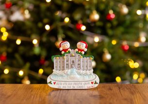 Una decorazione per la tavola di Natale con uno dei monumenti più famosi di Roma: la Fontana di Trevi. Tutti gli addobbi natalizi per la tavola da pranzo sono pronti per essere personalizzati inserendo i nomi sui 2 cappellini dei personaggi e scrivendo una frase, un augurio o una data sul banner bianco. Le nostre bravissime decoratrici scriveranno a mano ogni tuo desiderio, senza nessun costo aggiuntivo. Ogni decorazione sarà consegnata nella splendida Gift Box.