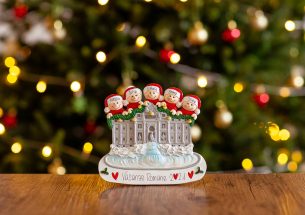 Una decorazione per la tavola di Natale con uno dei monumenti più famosi di Roma: la Fontana di Trevi. Tutti gli addobbi natalizi per la tavola da pranzo sono pronti per essere personalizzati inserendo i nomi sui 5 cappellini dei personaggi e scrivendo una frase, un augurio o una data sul banner bianco. Le nostre bravissime decoratrici scriveranno a mano ogni tuo desiderio, senza nessun costo aggiuntivo. Ogni decorazione sarà consegnata nella splendida Gift Box.