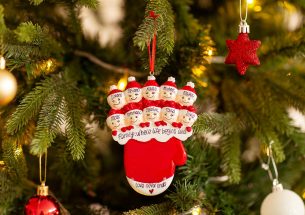 Qualcuno si diverte facendo capolino dal caldo e glitterato guanto natalizio. La decorazione da appendere all’albero è pronta per essere personalizzata inserendo i nomi sui cappellini dei 10 personaggi e scrivendo una frase, un augurio o una data sul banner bianco. Le nostre bravissime decoratrici provvederanno a scrivere a mano ogni tuo desiderio, senza nessun costo aggiuntivo. Ogni decorazione sarà consegnata nella splendida Gift Box.